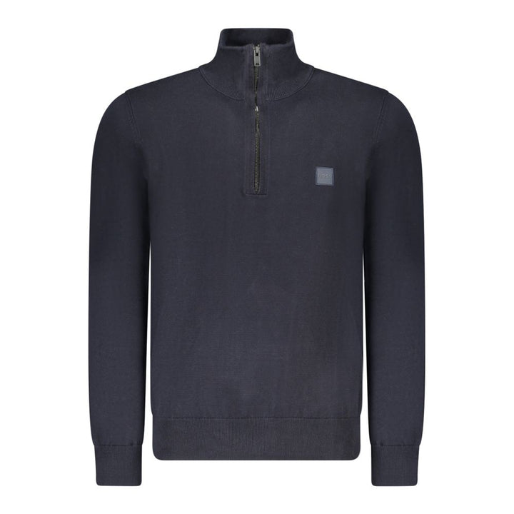 Elevate your style quotient with this sumptuously soft Hugo Boss sweater. A perfect blend of practicality and luxury, this long-sleeved knit features a sleek half-zip front and an iconic applique logo for a touch of class. Crafted with a fine mix of cotton and cashmere, this blue sweater promises warmth and unmatched comfort. Ideal for both crisp mornings and cool evenings, make a statement in this timeless piece that echoes sophistication.