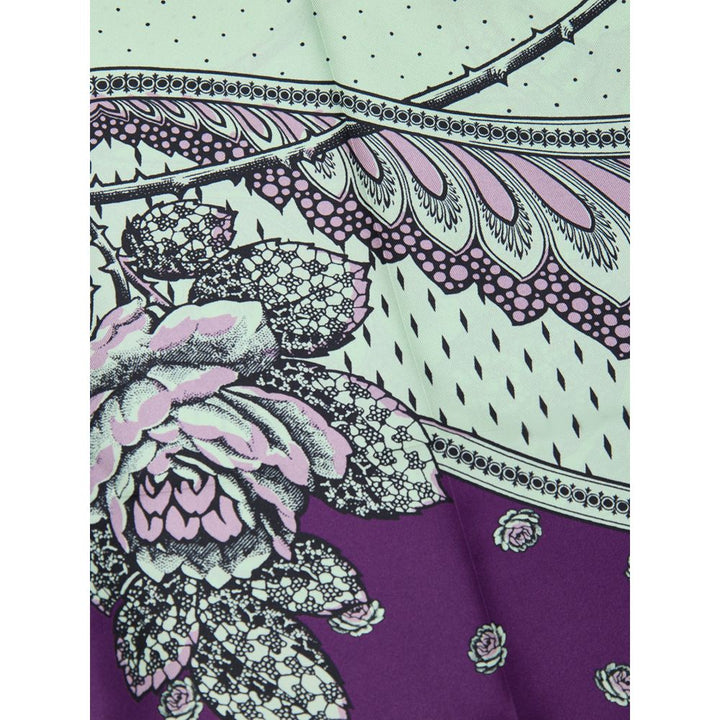 Gucci Print Silk Palazzo Pants. In aqua green and purple, with contrasting polka dots and flower print. Side zip opening, no button, two side welt pockets, wide leg.